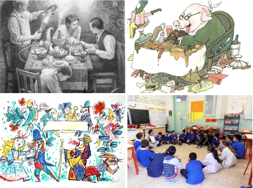 Scopriamo quindi che esistono anche altre tavole, realistiche o fantastiche, rappresentate in modo vario, bizzarro e meraviglioso nelle illustrazioni di silent book, fumetti, albi e libri illustrati.